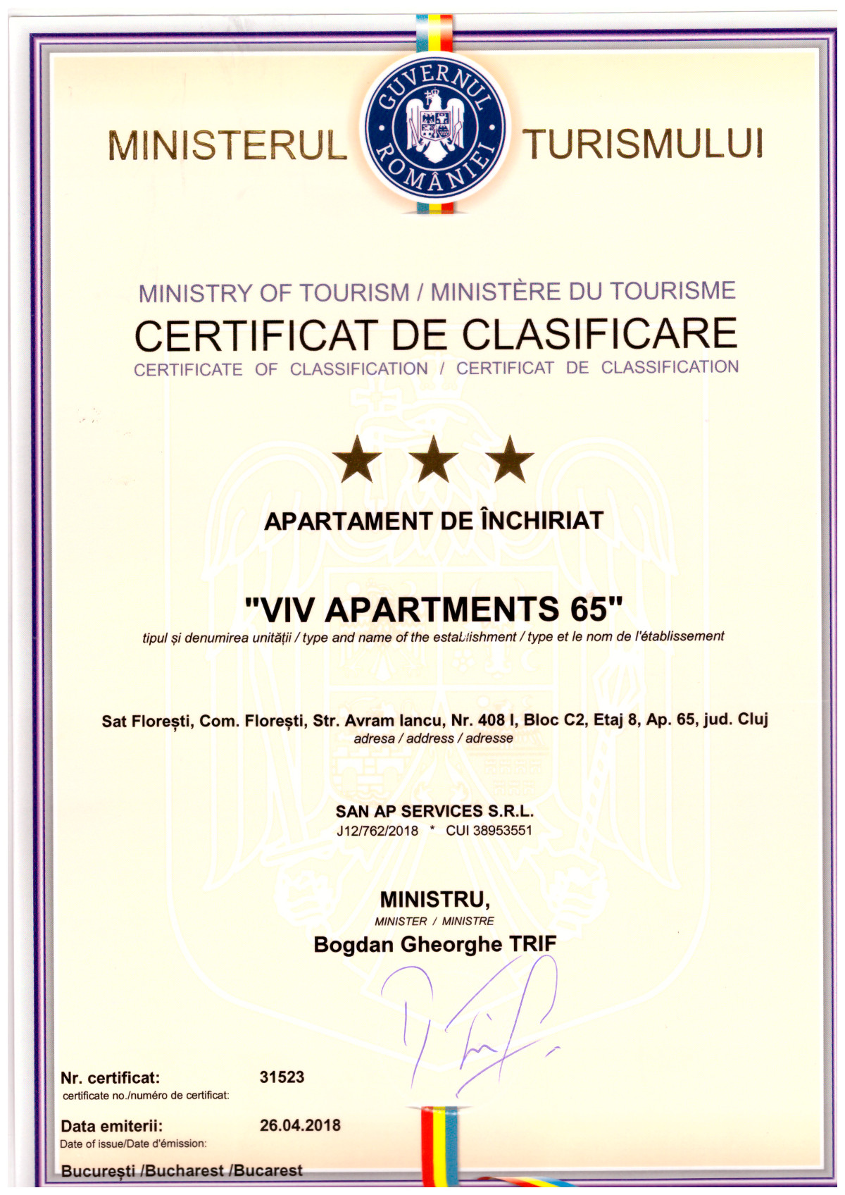 Anul constructiei – 2017. Toate locatiile VIV Apartments sunt acreditate de Ministerul Turismului si corespund unei clasificari de 3*(clasificare maxima pentru acest tip de unitate de cazare).